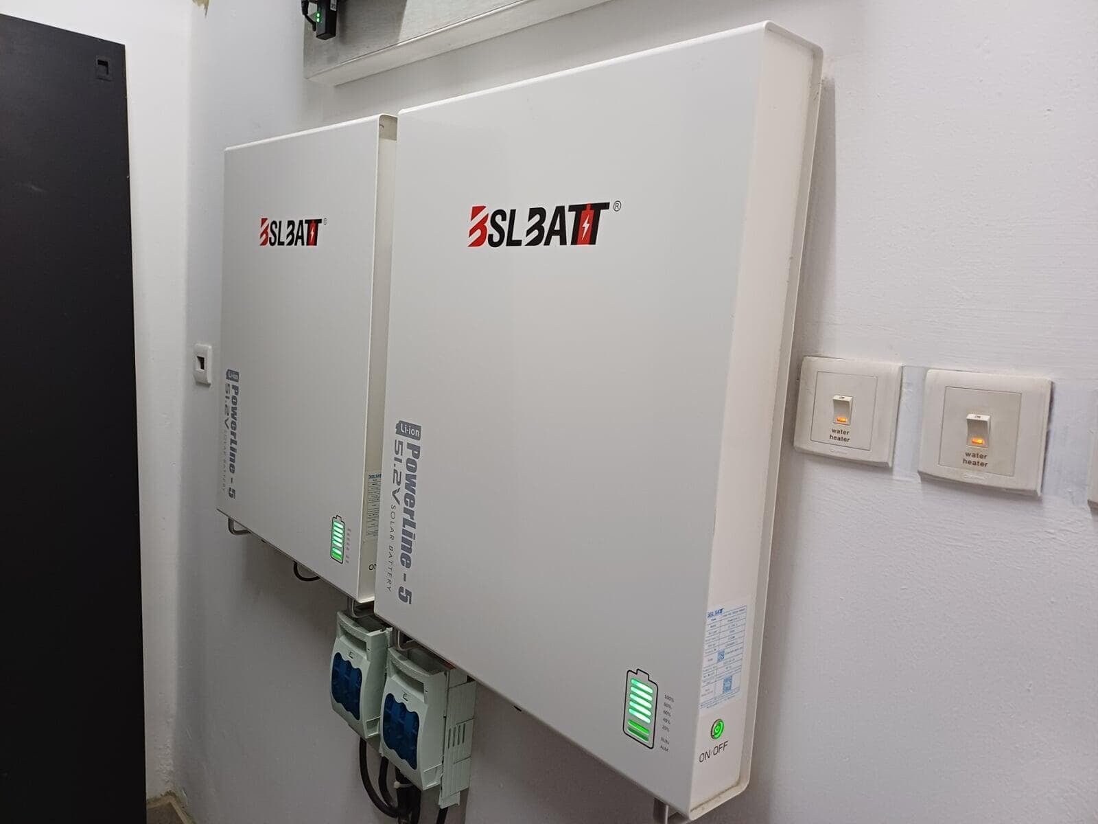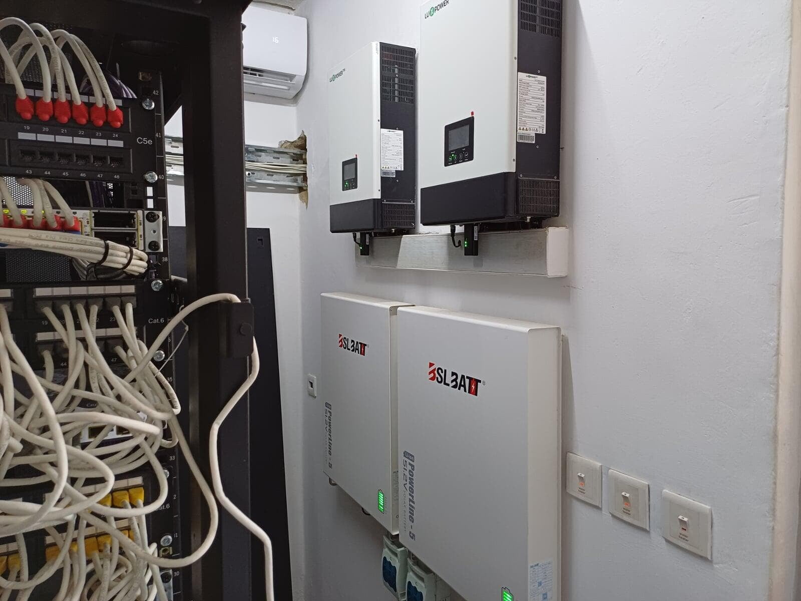 A 10Kwh backup system was installed to ensure no power interruption for a server room. 2x5.12Kwh BSL powerline 5 wall mounted energy storage bank, and 2x5Kw Luxpower hybrid inverters.