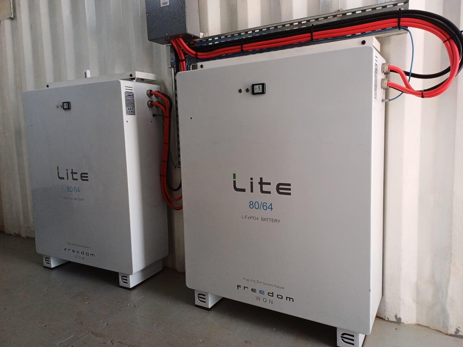 » 2x80/64 Freedom Won Lite LiFePO4 Lithium Energy Storage Batteries providing 160kWh power.