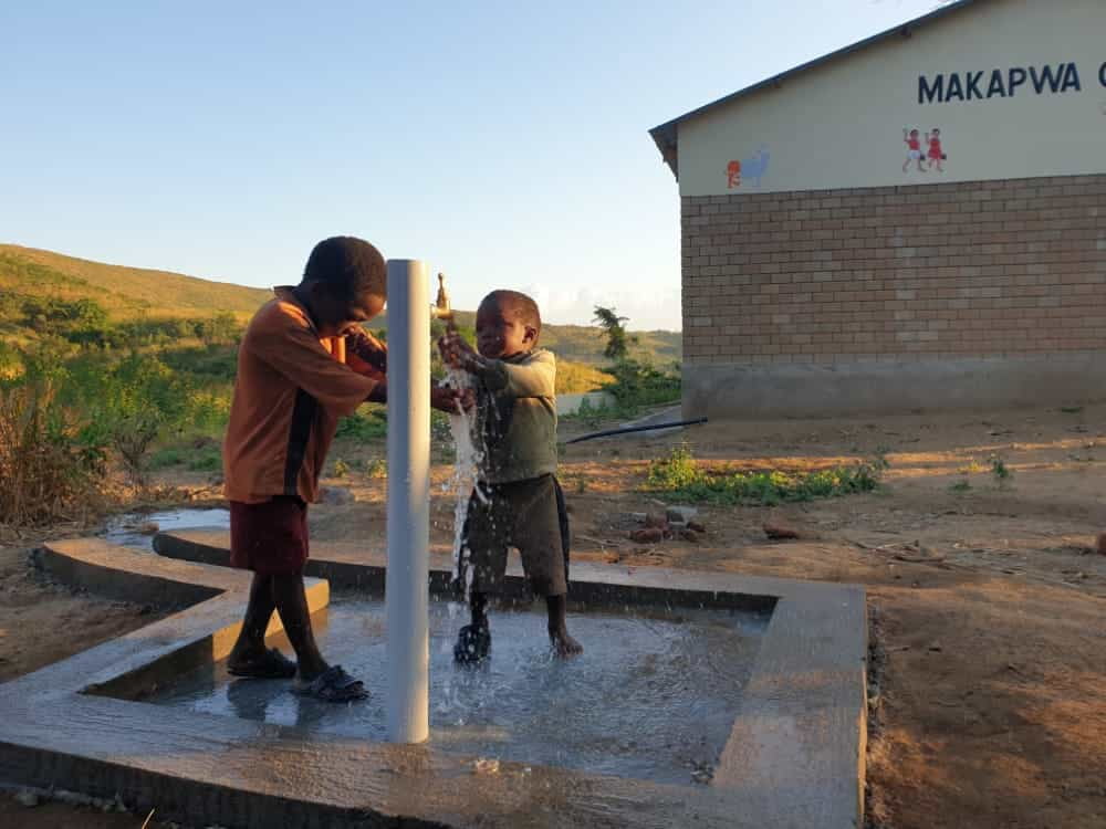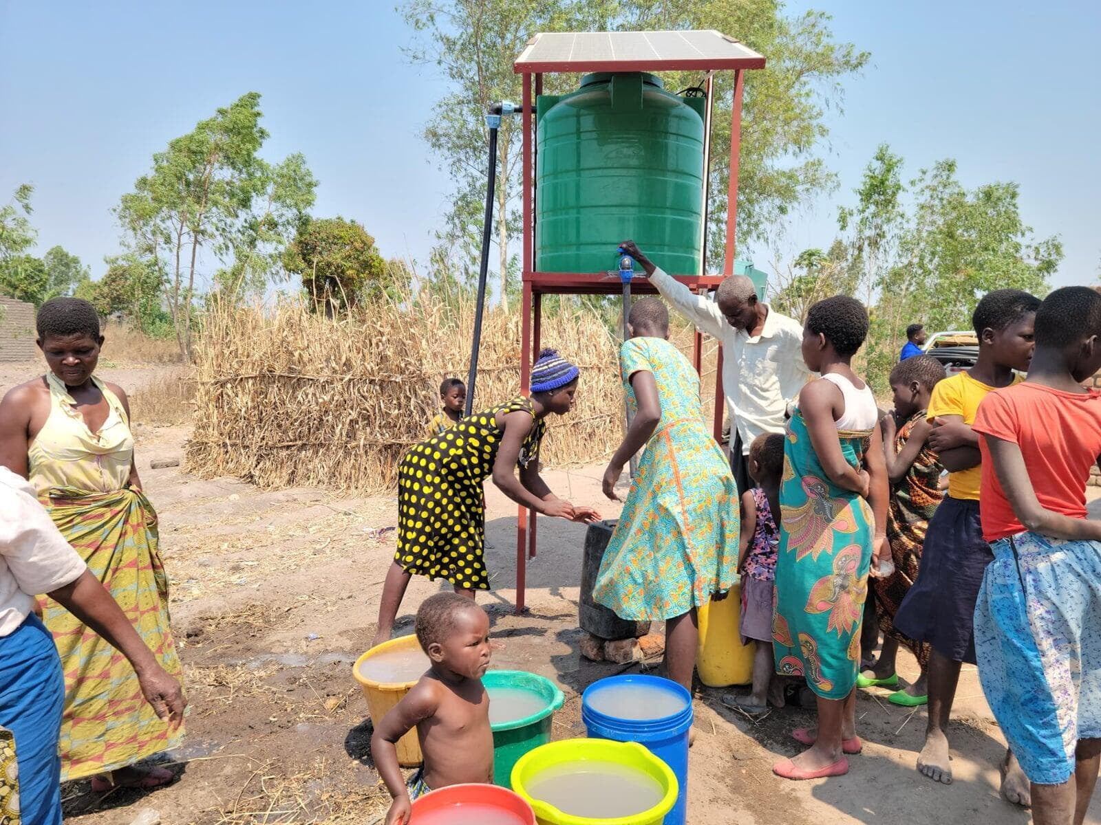 Makapwa CBCC, within Chimembe village in Chileka, lacked access to clean water, relying on open water sources like rivers and hand-dug shallow wells. With the support of SEIBO Maria, Irritech developed a solar water supply system for Chimembe CBCC, ensuring access to safe water. This initiative also benefitted the wider community. The project included borehole drilling, a solar submersible pump, rack, pipe network, a 3.5m masonry tank tower, a 10m3 tank reservoir, and three water tapping points, providing the community with their first-ever access to tap water.